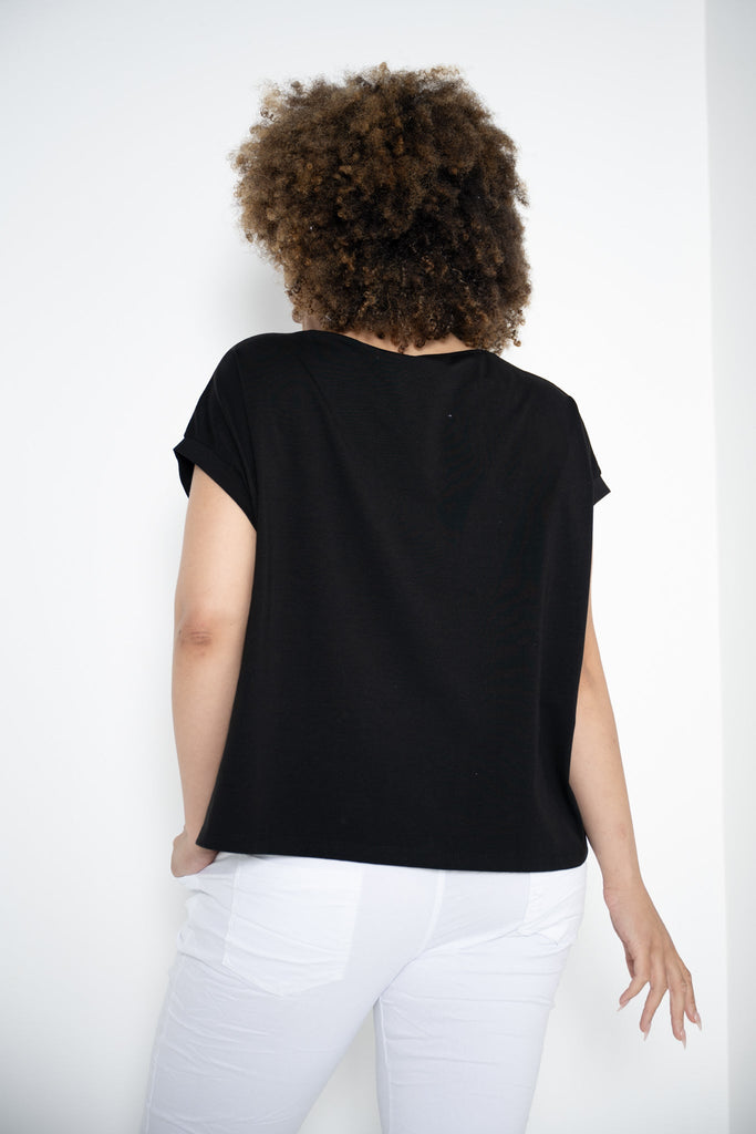 With dropped shoulders creating a soft cap sleeve and a relaxed fit through the body, this tee is a statement piece with cultural flair—ideal for elevating simple layers or adding a graphic edge to your everyday look.